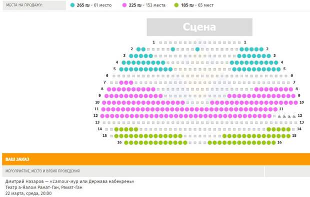 В Рамат-Гане не раскуплено почти 280 билетов – примерно две трети всего зала. Не лучше ситуация складывается в Беэр-Шеве, Хайфе и Ришон ле-Ционе (более 200 свободных мест в каждом из этих городов, согласно данным ресурса «Касса BRAVO!»). Судя по всему, выступать Назарову придется в лучшем случае в полупустых залах.